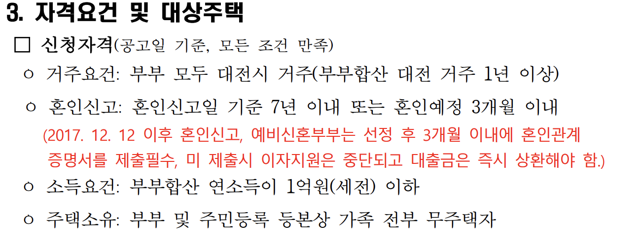 주택 요건 | 부부 및 주민등록 등본상 가족 전부 무주택자 |