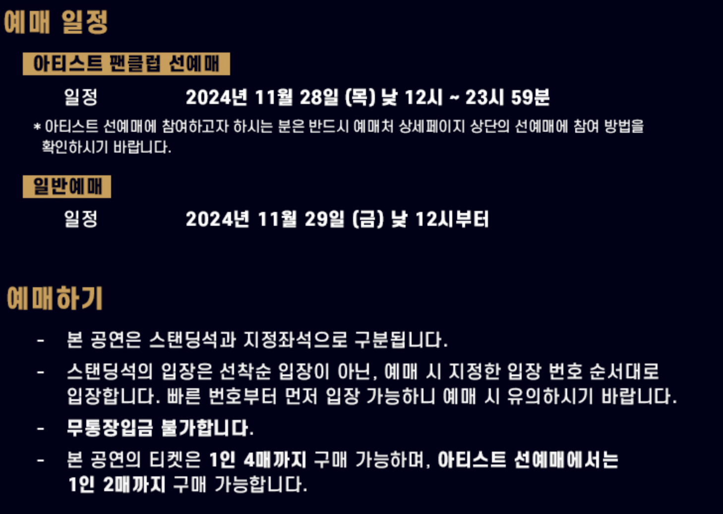 - 예매 일정: 2024월 11월29일(금) 낮 12시~23시30분